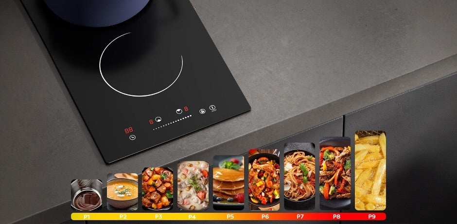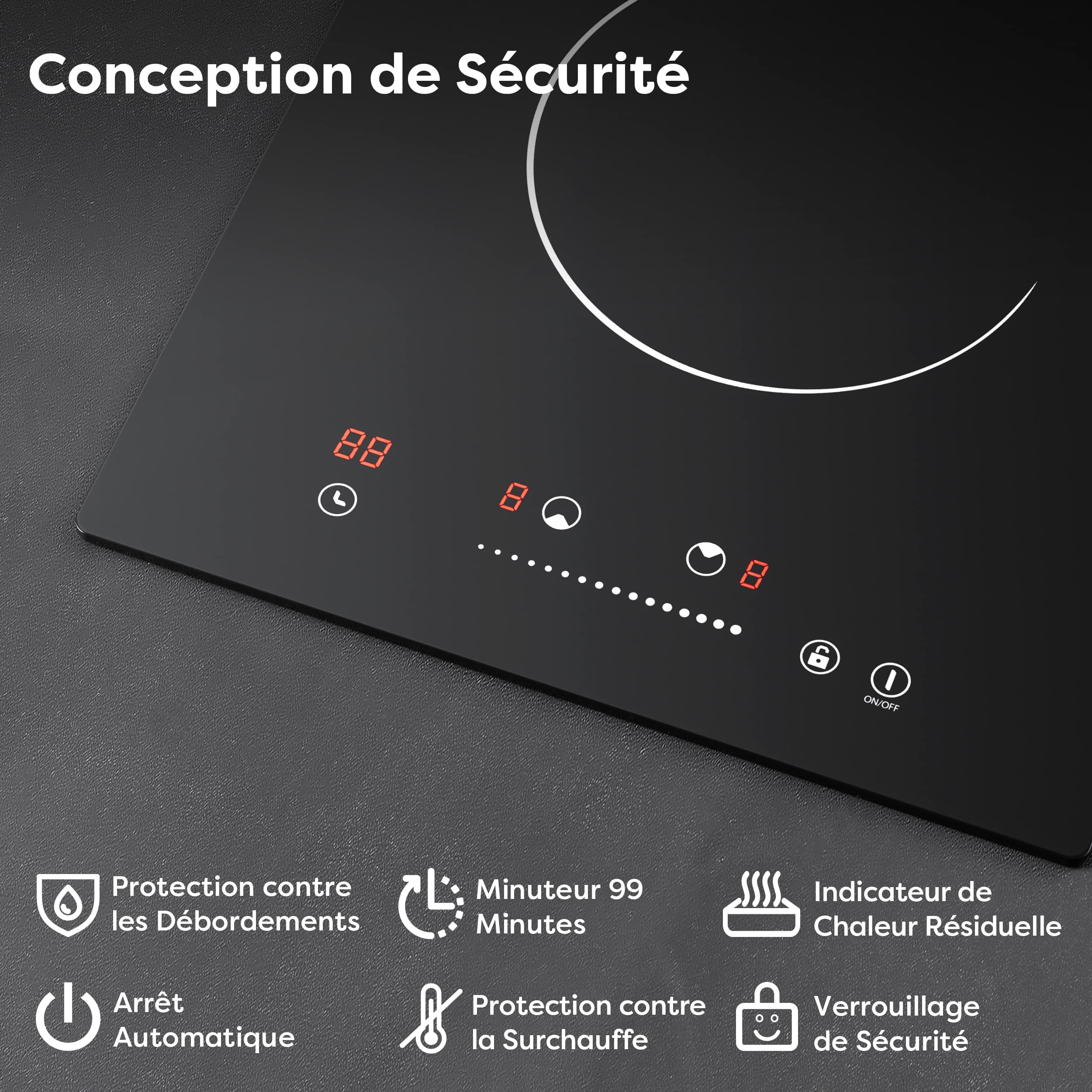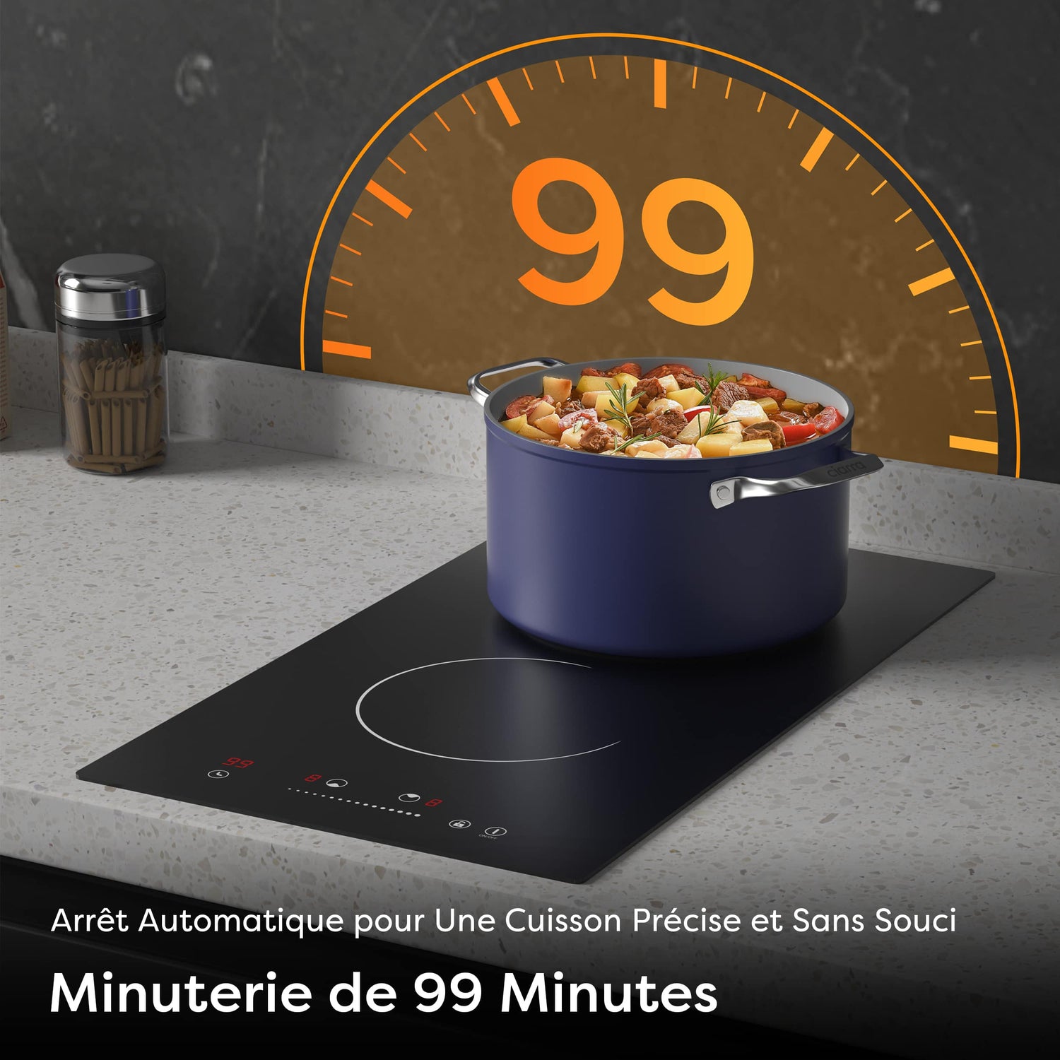 • Cuisson Puissante à Double Zone : 3000W au total (1200W + 1800W) pour une chauffe rapide et un contrôle précis de la température sur 9 niveaux de puissance.
