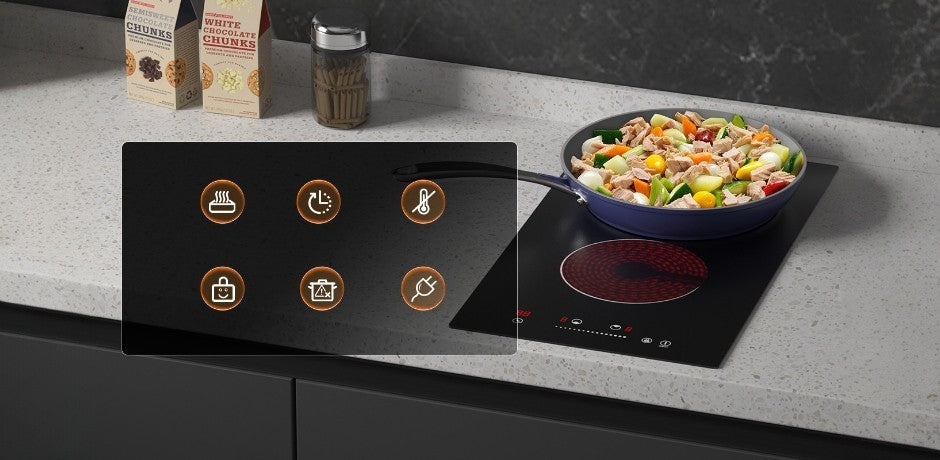 • Commande Tactile Intuitive et Minuteur : Faites glisser votre doigt sans effort pour ajuster les réglages et réglez le minuteur intégré de 99 minutes pour une cuisson précise en toute liberté.