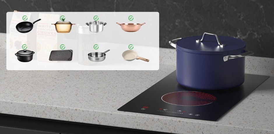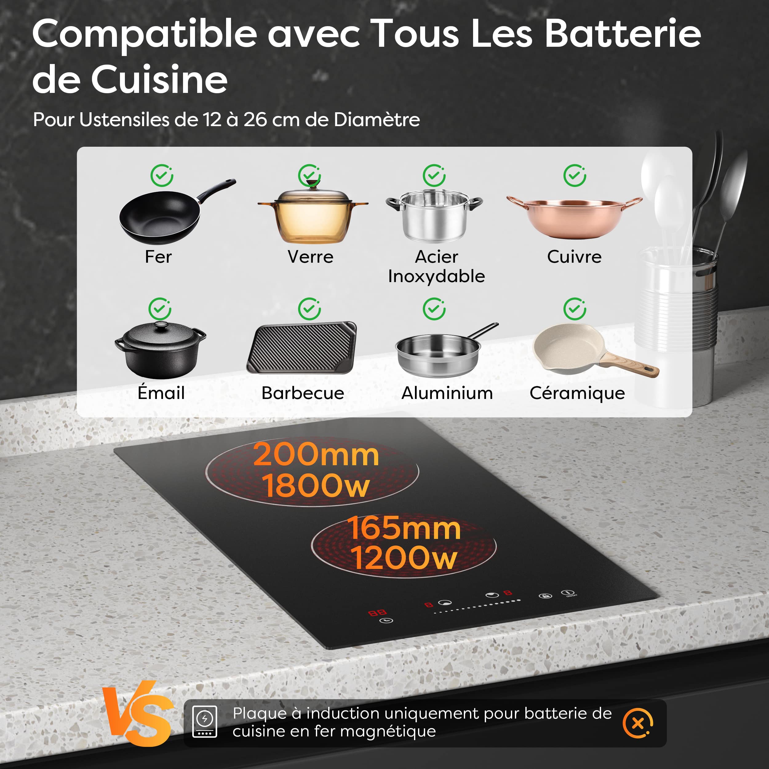 • Compatibilité Universelle des Ustensiles : Fonctionne avec tous types de casseroles et poêles (fonte, céramique, acier inoxydable, verre). Pas besoin de remplacer votre batterie de cuisine.