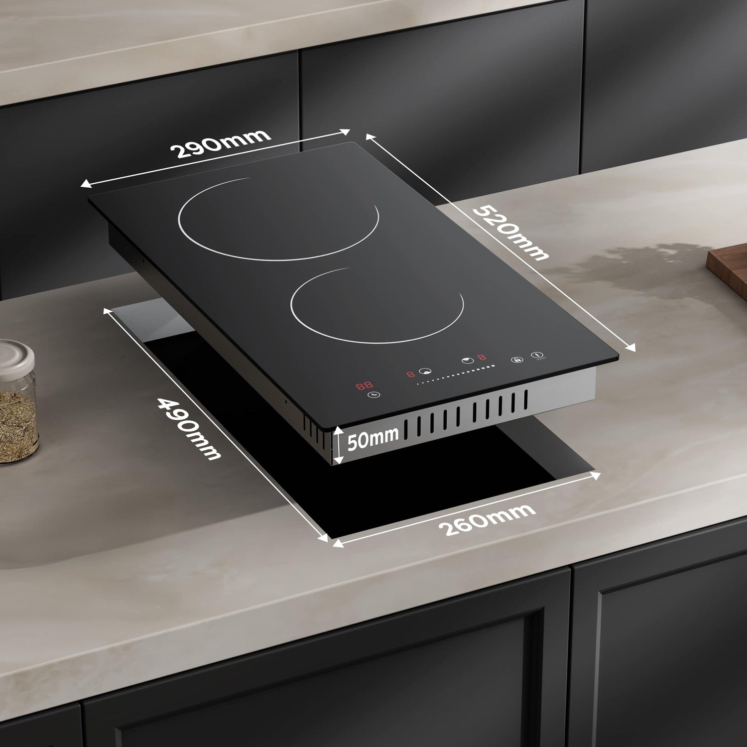 Ciarra x CDV 3000W Plaque Vitrocéramique 2 Foyers, Design Compact pour Studios, 9 Niveaux & Tactile, CDVER302-OW