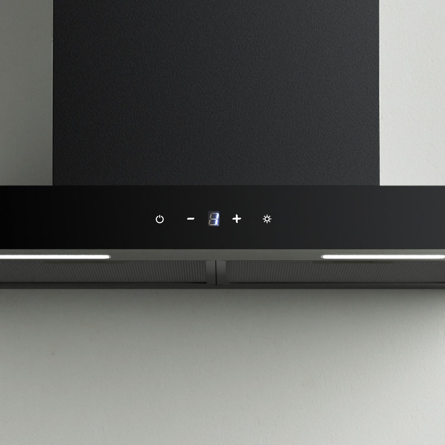 - Hotte murale 60cm boîtier en acier avec panneau de commande en verre noir