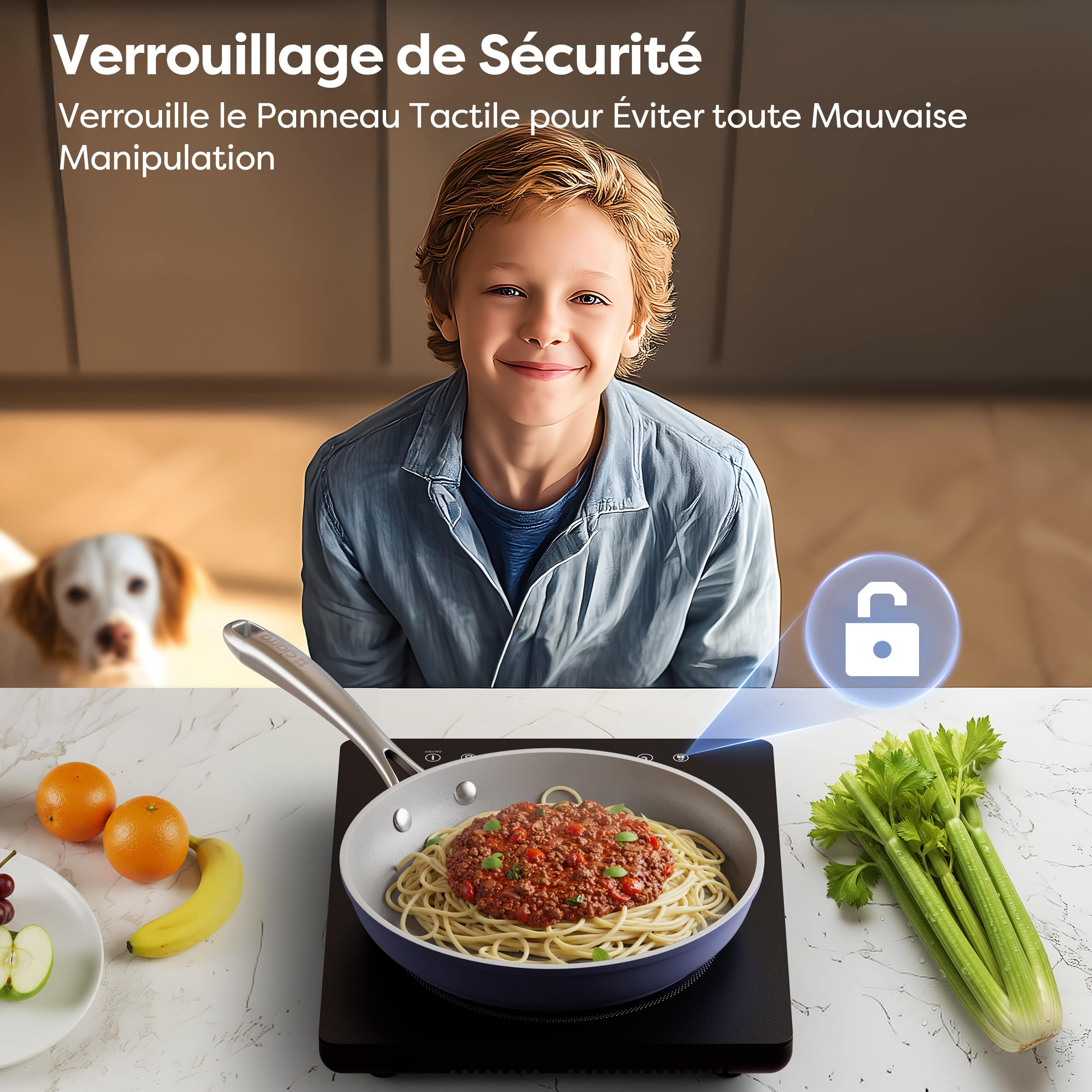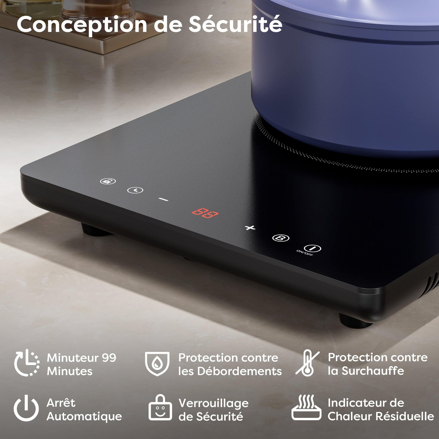 • ⏲️ Minuteur Intelligent 99 Min : Réglez votre temps et laissez la plaque faire le reste — elle s'éteint automatiquement pour une cuisine sans souci.