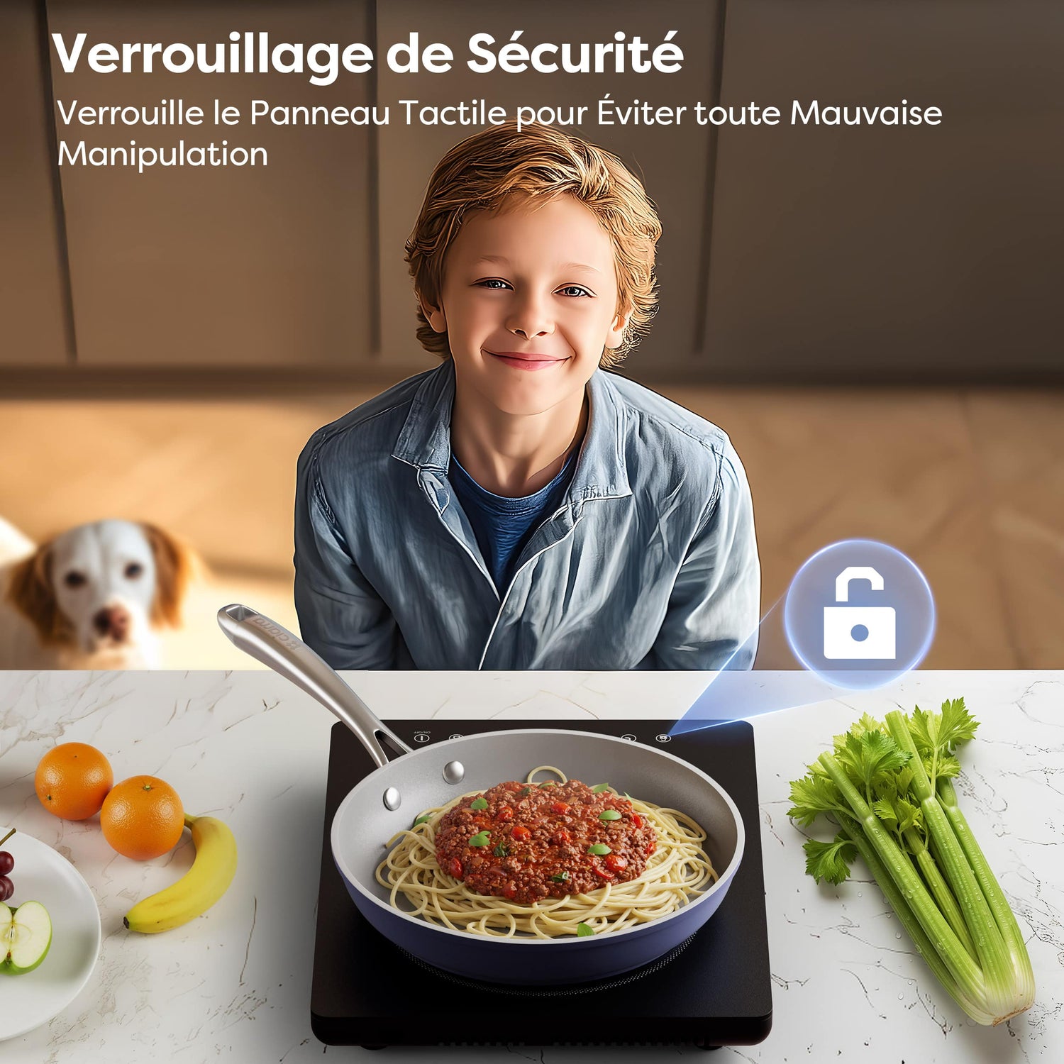 • 🛡️ Protection de Sécurité Multicouche : Équipée d'une sécurité enfant, de la détection de casserole, de l'arrêt automatique et d'un indicateur de chaleur résiduelle.