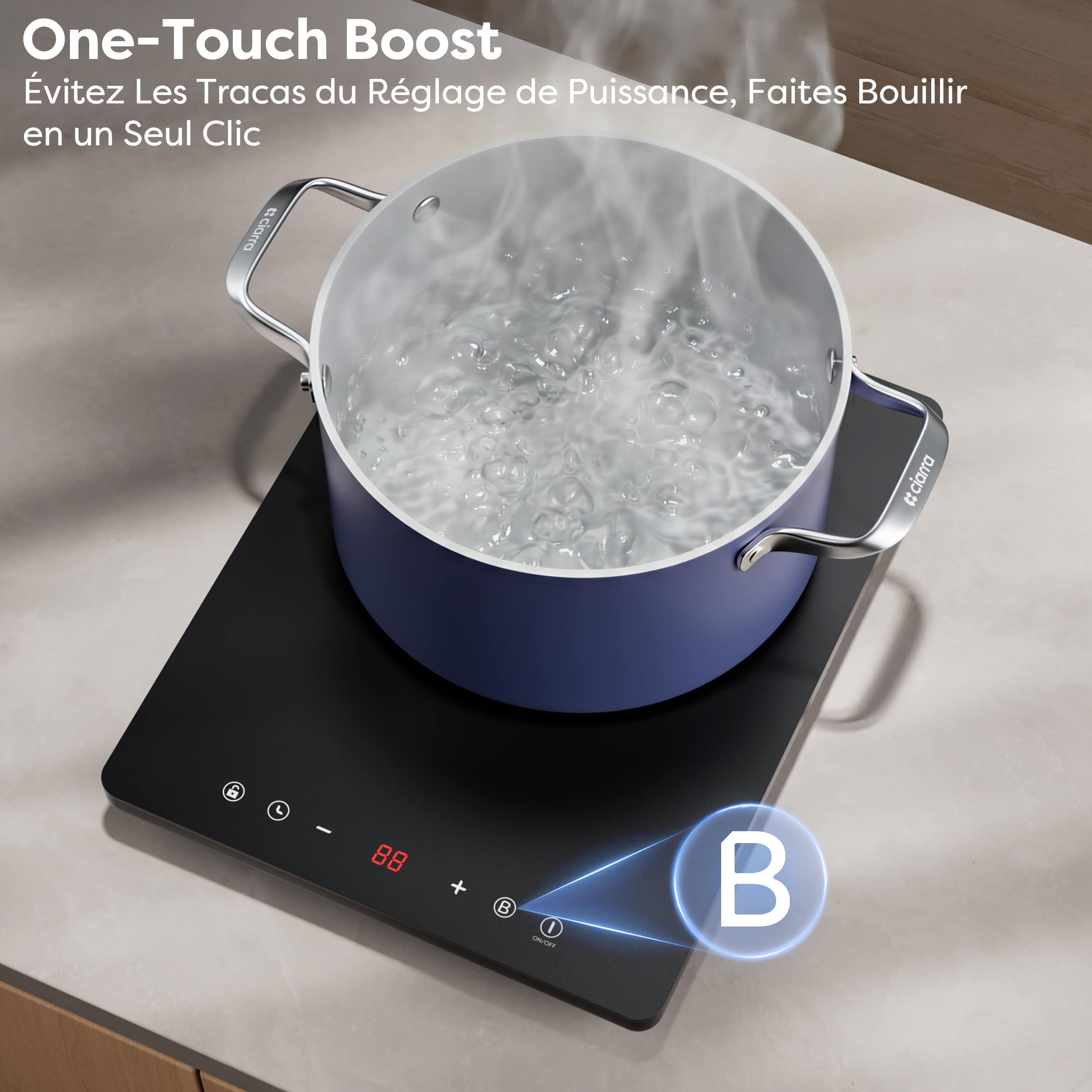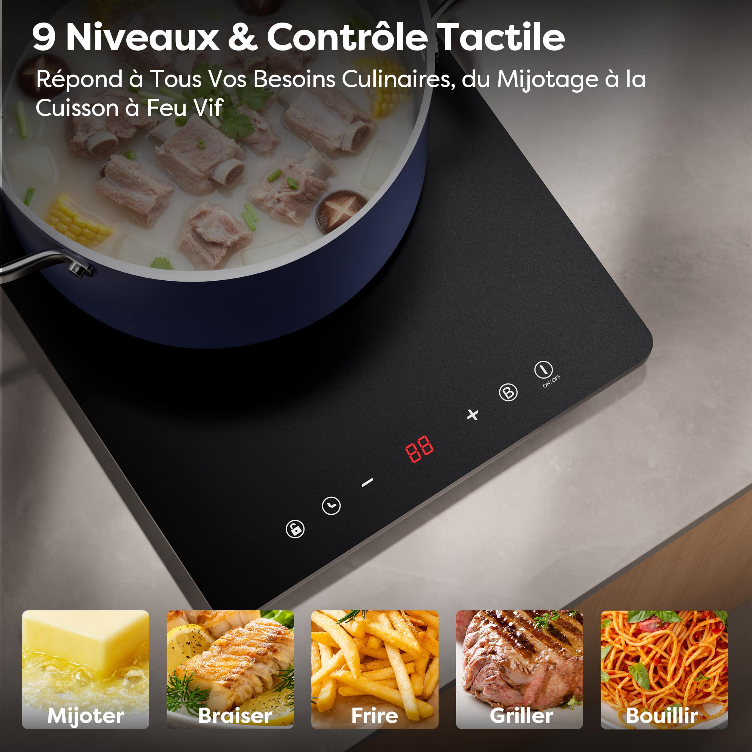 • ⚡ Boost Rapide 2000W & 9 Niveaux de Puissance :  Du mijotage délicat à l'ébullition rapide, profitez d'un contrôle instantané de la chaleur.