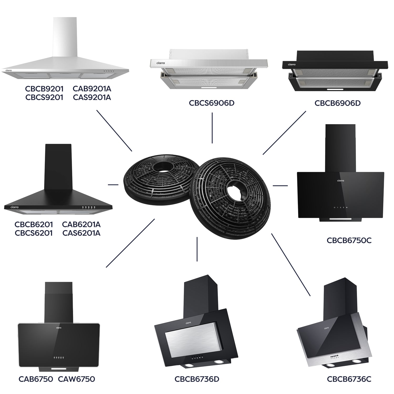 Ciarra Filtre à Charbon pour Hotte Aspirante CBCF002X2-OW