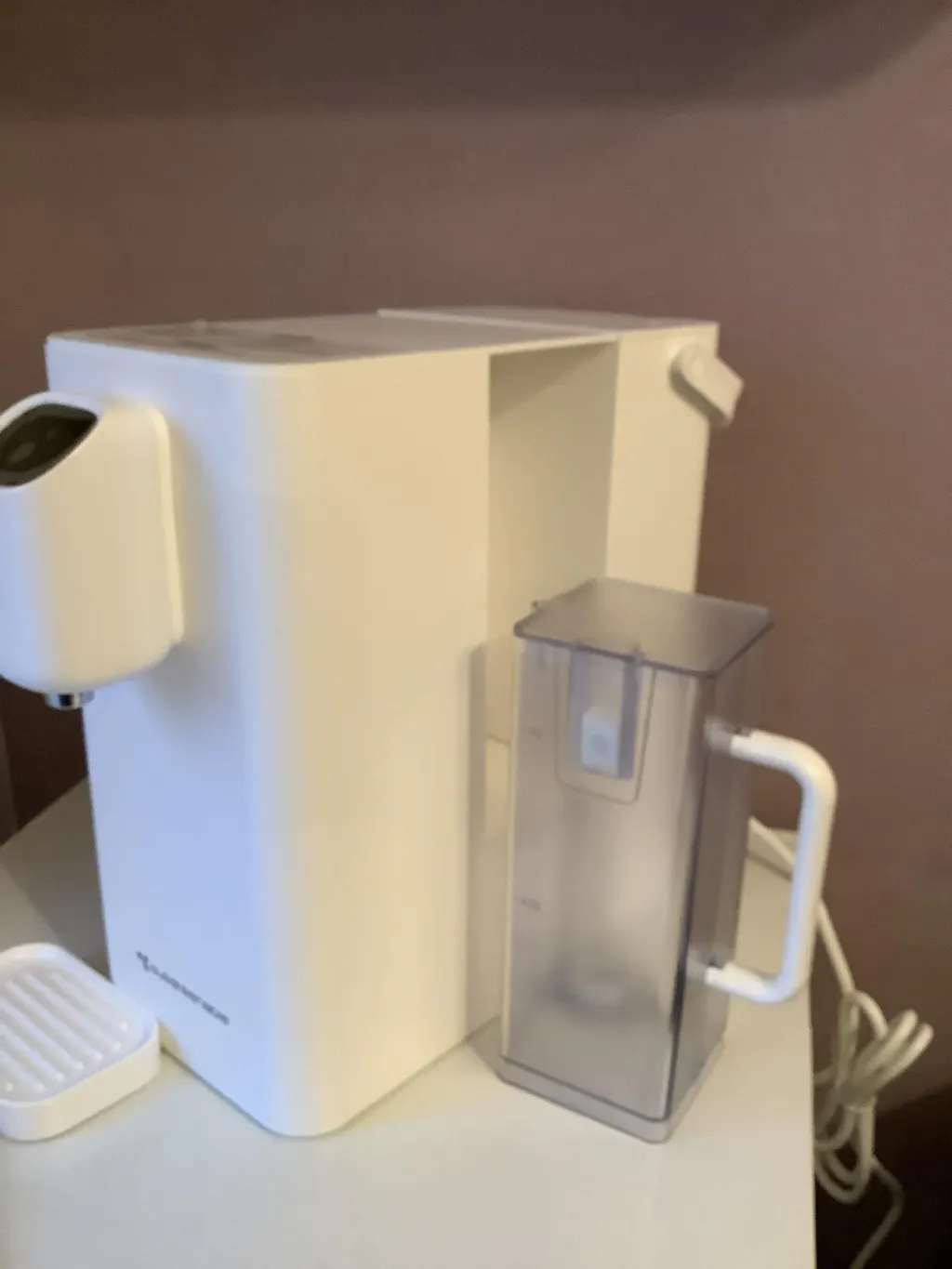 J'ai commandé le distributeur d'eau chaude instantanée RO. Au départ, cela me semblait être une bonne idée pour remplacer ma bouilloire ; toutefois, l'appareil présente quelques inconvénients. Tout d'abord, il est bien plus grand et encombrant que ma bouilloire, et il accapare un espace précieux sur le plan de travail. La machine est solidement construite, et les réservoirs pour l'eau du robinet et l'eau filtrée sont faciles à insérer et à retirer. L'installation est simple et l'appareil se branche sur le secteur. Il est fourni avec un livret d'instructions. Il conviendrait mieux à une grande cuisine ou à un bureau.