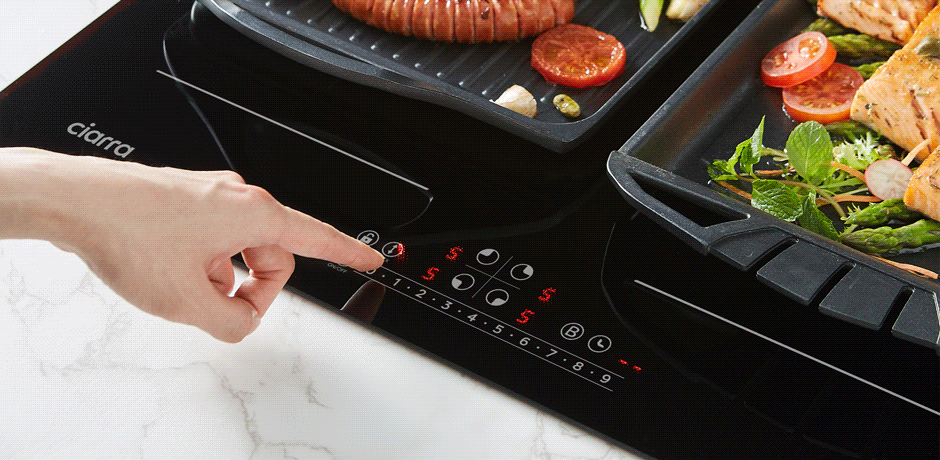 CIARRA Plaque à Induction 7200W 2 Flex Zones Function Boosters CBBIH4BFF-OW