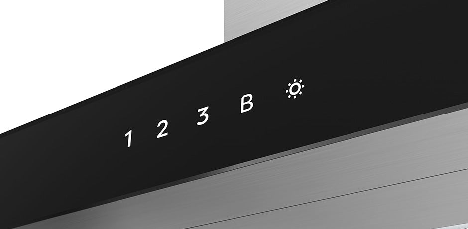 • Hotte murale 90cm en acier inoxydable avec panneau de commande en verre noir