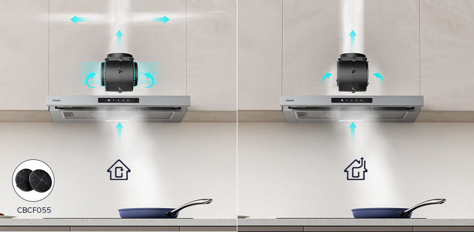 - Fonctionnement en recyclage ou à évacuation - équipé d'un filtre à charbon CBCF055 (inclus).