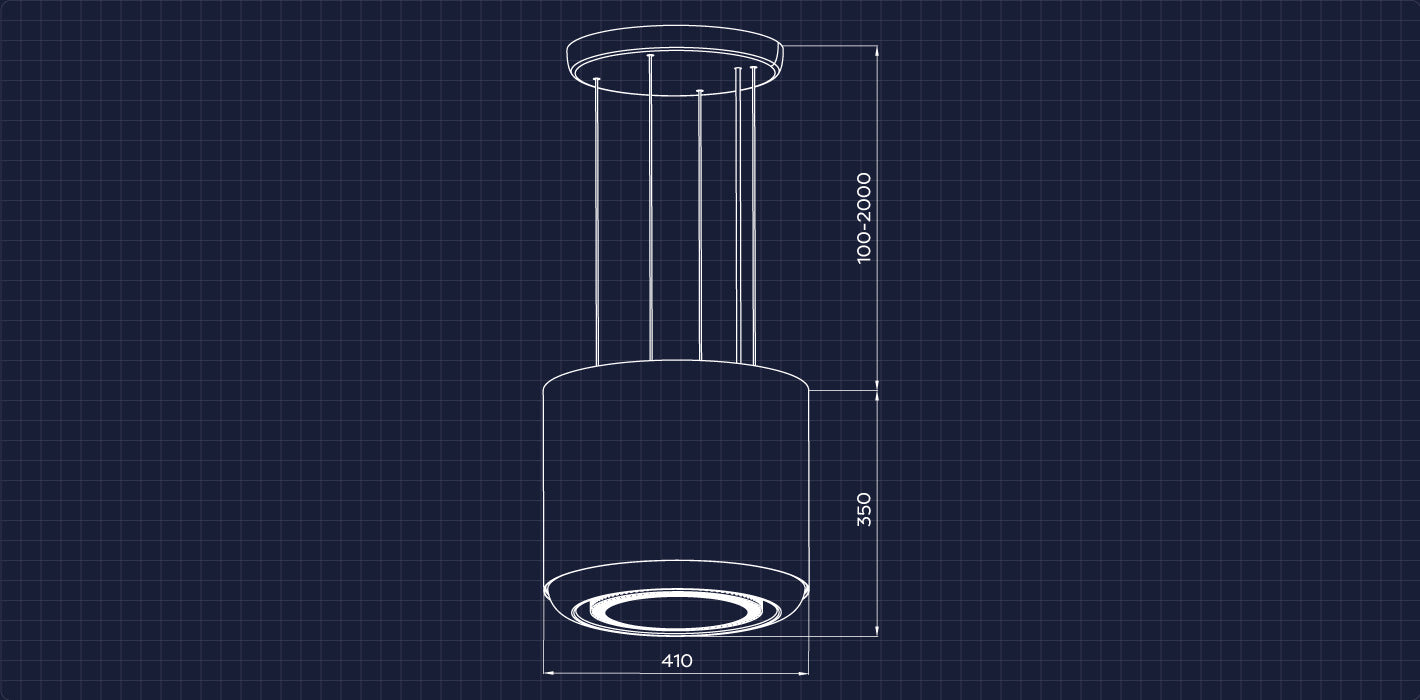- Hotte îlot 41 cm, débit d'air 550m³/h.