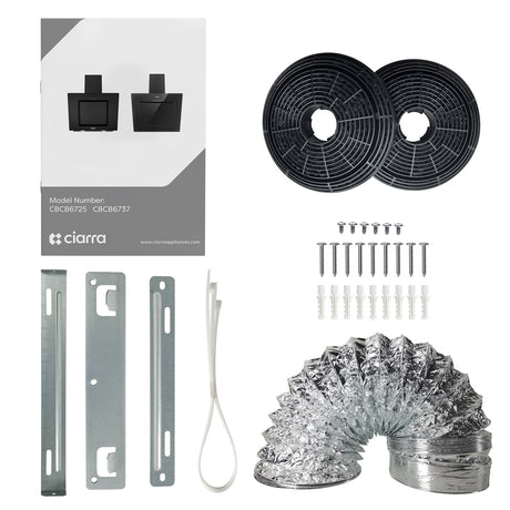 Ciarra La hotte aspirante murale est livrée avec les éléments suivants dans la boîte:
