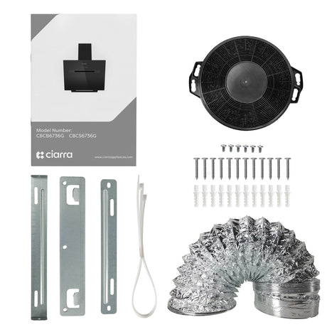 Ciarra la hotte aspirante Smart Island est livrée avec les éléments suivants dans la boîte: