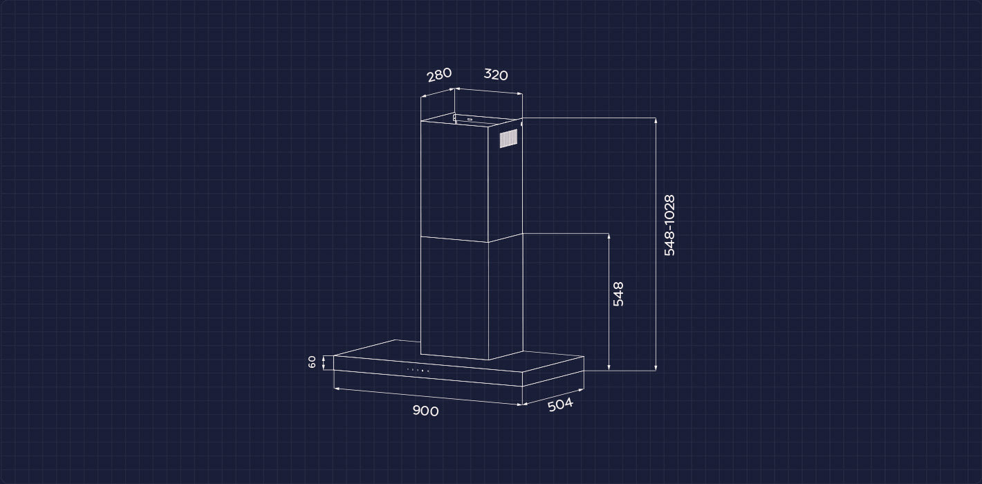 - Hotte murale 90cm en acier inoxydable avec panneau de commande en verre noir