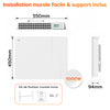 - 🧱 Installation murale compacte et élégante : Boîtier en métal blanc, seulement 9,4 cm d’épaisseur, idéal pour tous les intérieurs modernes.