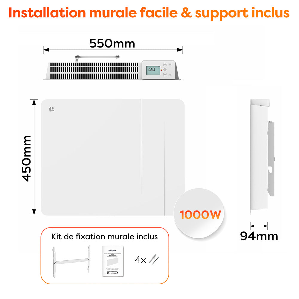 - 🔒 Sécurité renforcée : Protection contre la surchauffe, IP24 (convient aux salles de bain), Classe II, conforme NF/CE/ErP/RoHS.