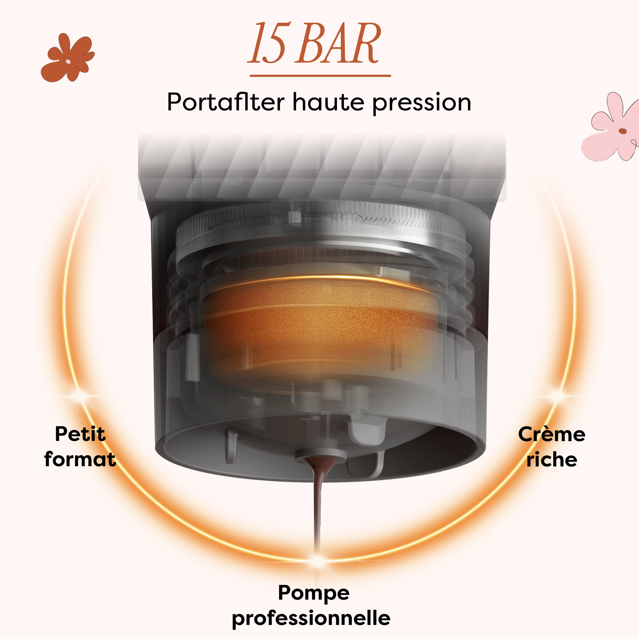 - ☕️ Pompe professionnelle 15 Bar - Offre une crema riche et une saveur d’espresso authentique, comme dans votre café préféré.