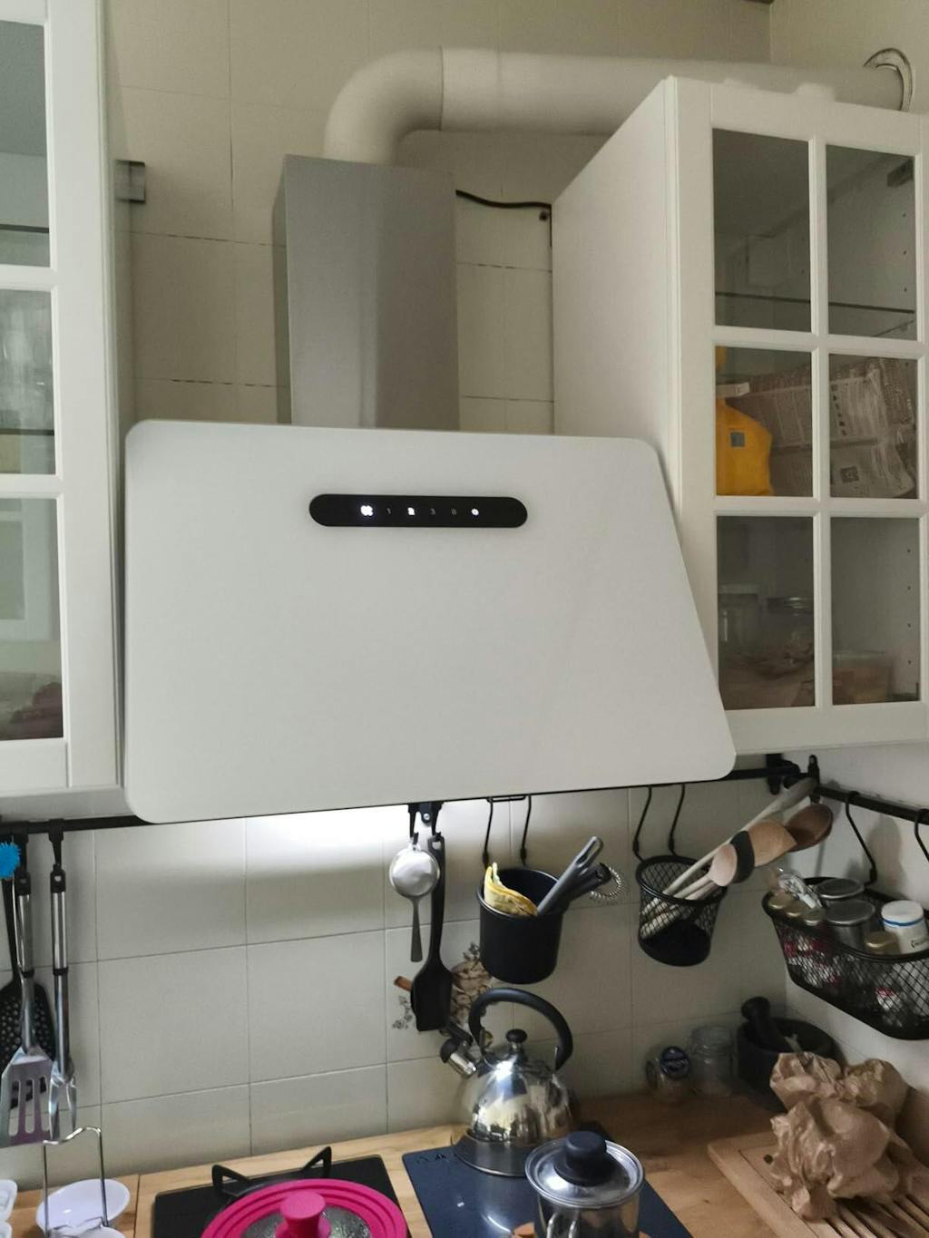 | Matériau de la hotte aspirante | Acier inoxydable et verre blanc |