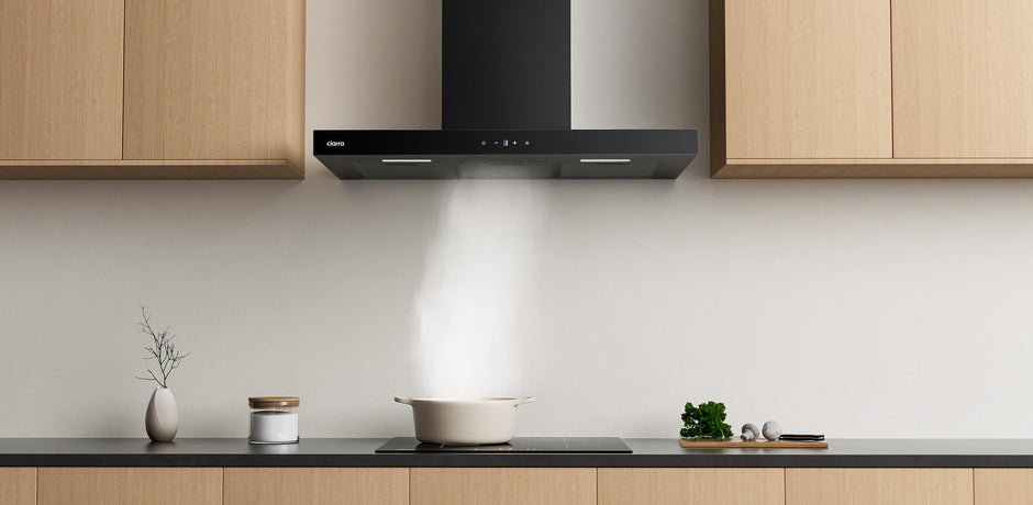 - Hotte murale de 90 cm avec panneau de commande en verre