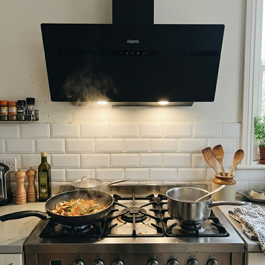 Dire que cette hotte Ciarra est bien meilleure que notre précédente est un euphémisme. Esthétique, performance et niveau sonore : la différence est flagrante. Nous sommes ravis du modèle CBCB9102P. Bien que j'aie initialement opté pour ce modèle pour sa connectivité Wi-Fi, une fois installée, je n'ai pas jugé utile de l'utiliser davantage. Nous en sommes pleinement satisfaits.
