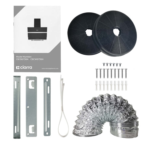 Ciarra La hotte aspirante murale est livrée avec les éléments suivants dans la boîte: