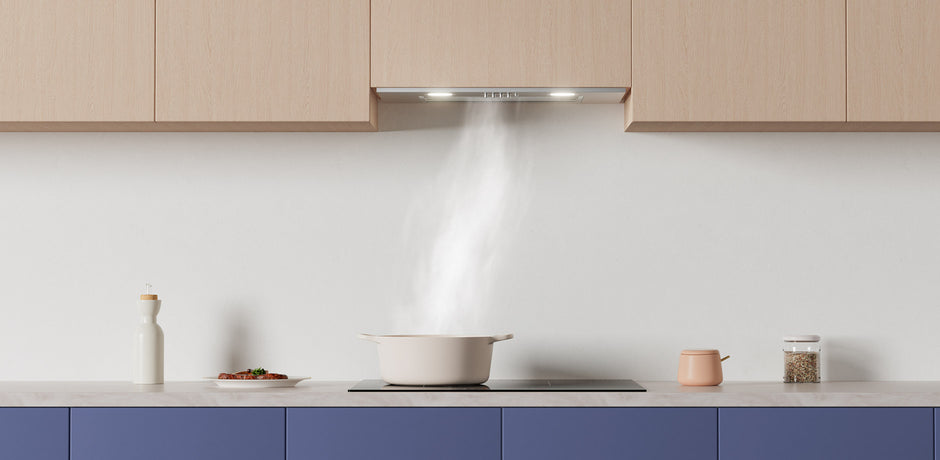 - Hotte encastrable intégrée dans le placard pour libérer de l’espace de cuisine