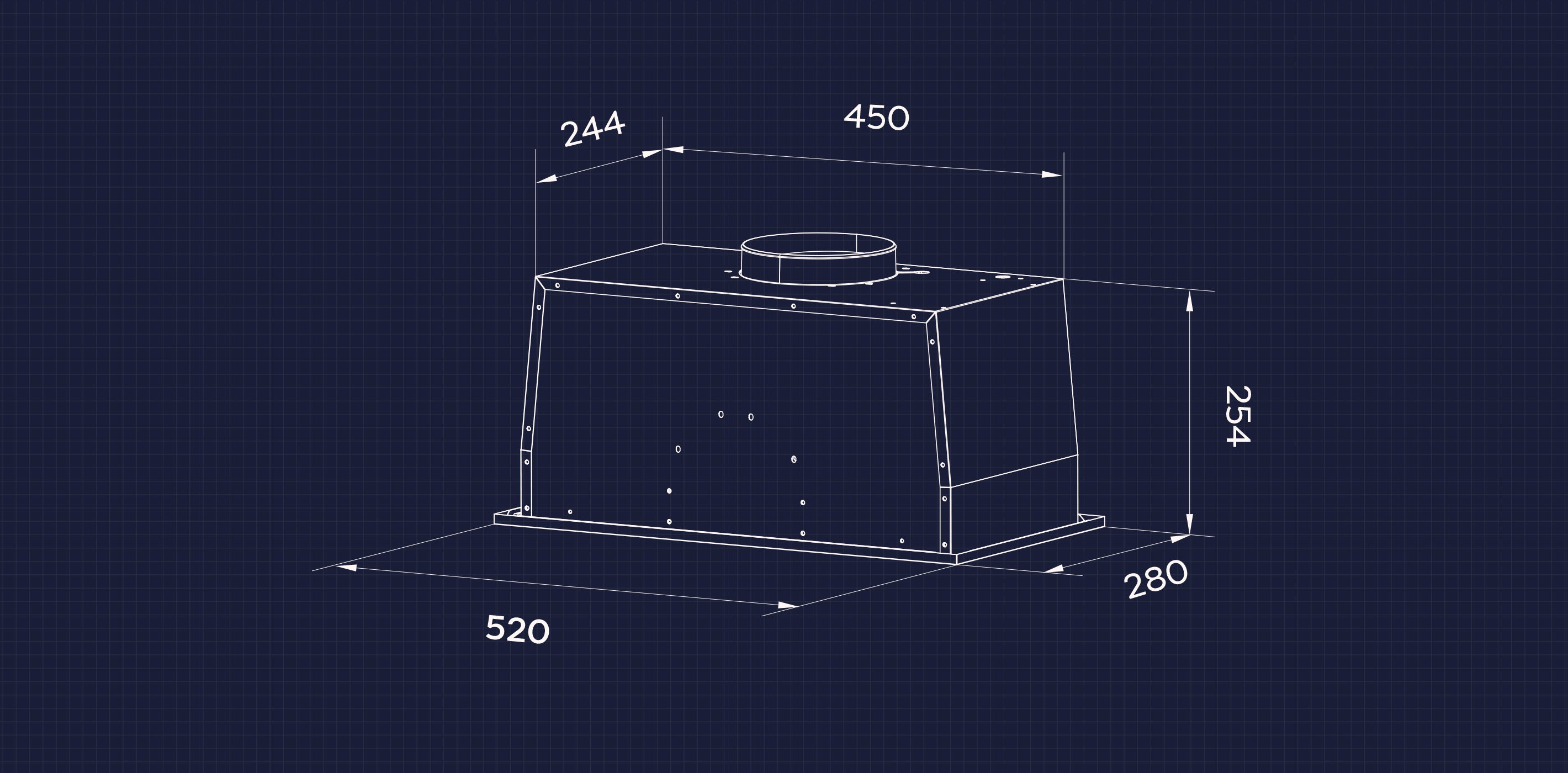 Détails de l'étape de puissance | Étape 1: 335m³/h 52dB(A) Étape 2: 450m³/h Étape 3: 600m³/h 64dB(A) |