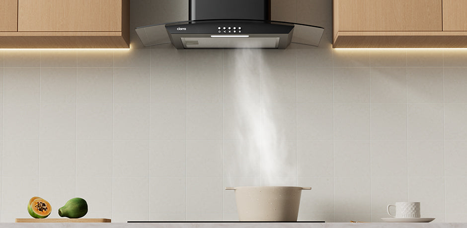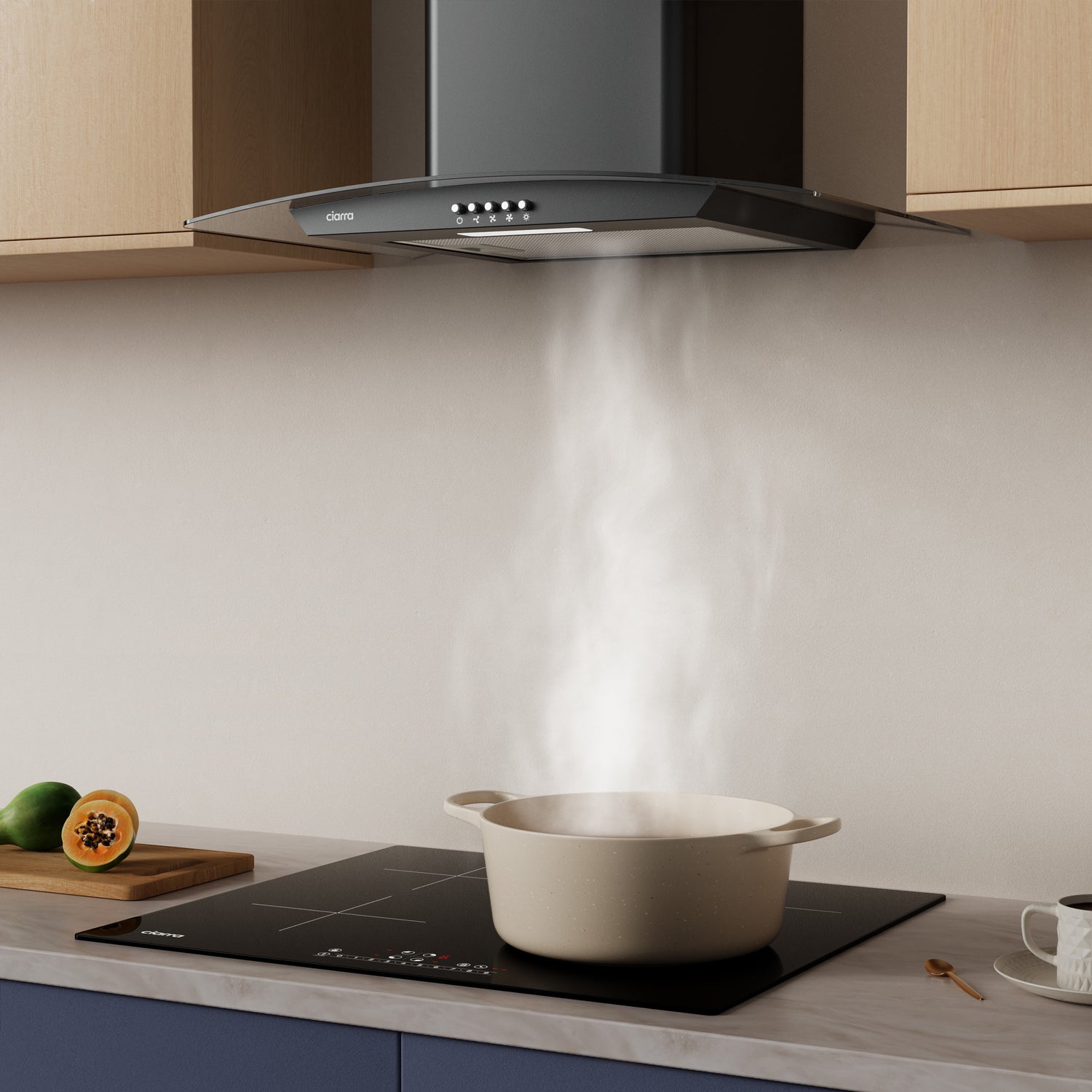 - Hotte décorative de 60cm en acier peint mat et verre arqué
