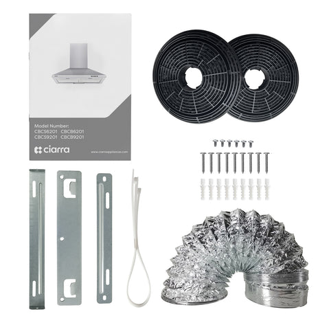 La hotte aspirante murale Ciarra est livrée avec les éléments suivants dans la boîte :