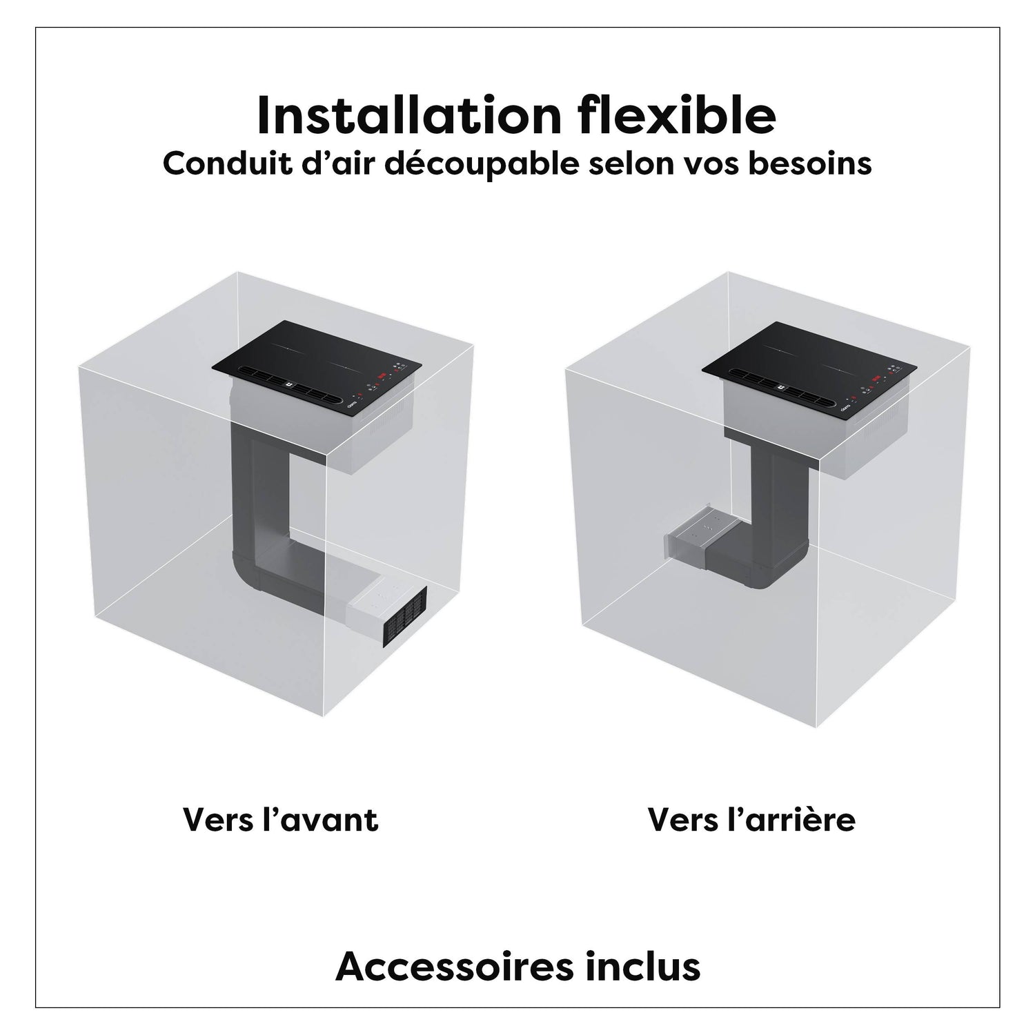 • Deux âmes en UNE : plaque à induction encastrable combinée à une hotte