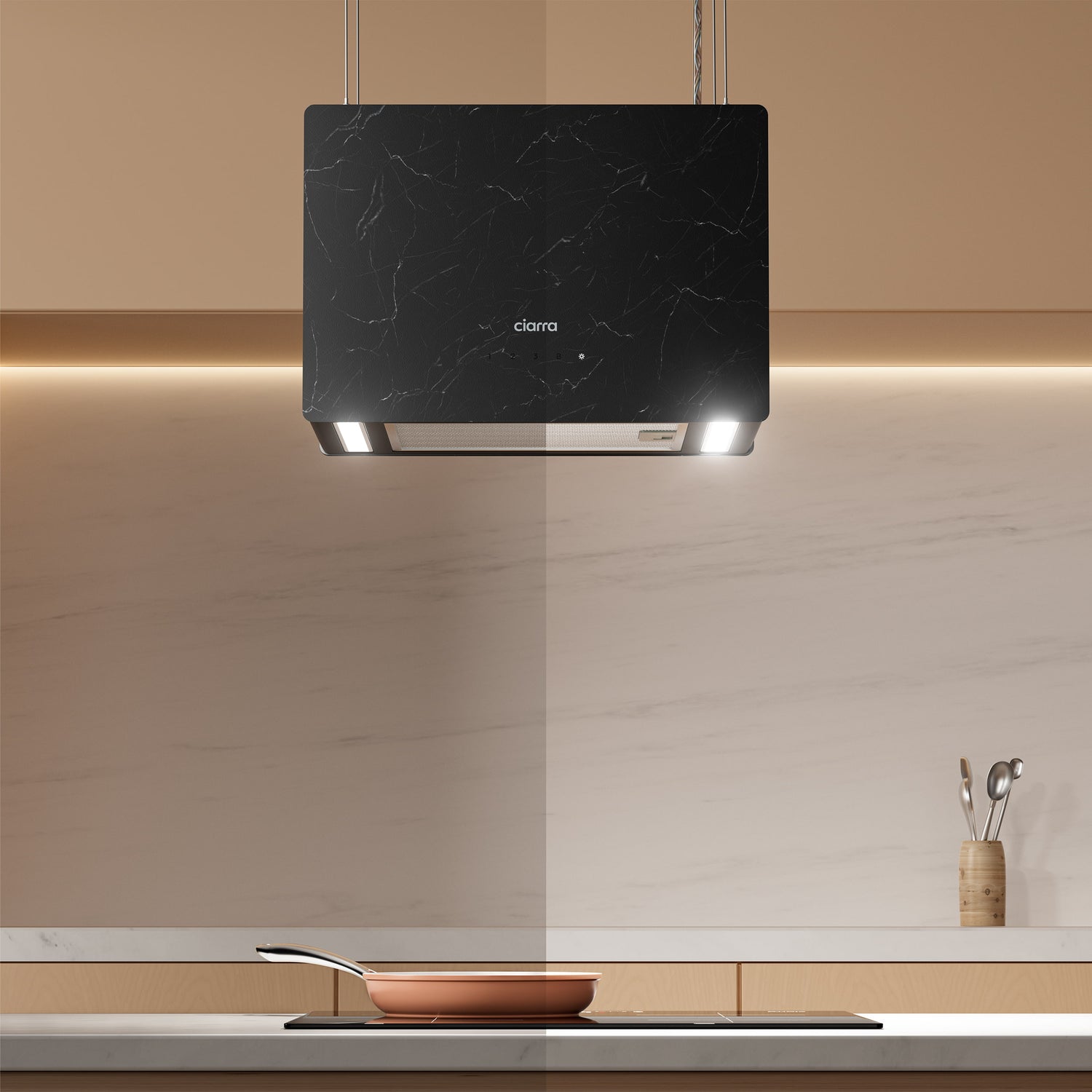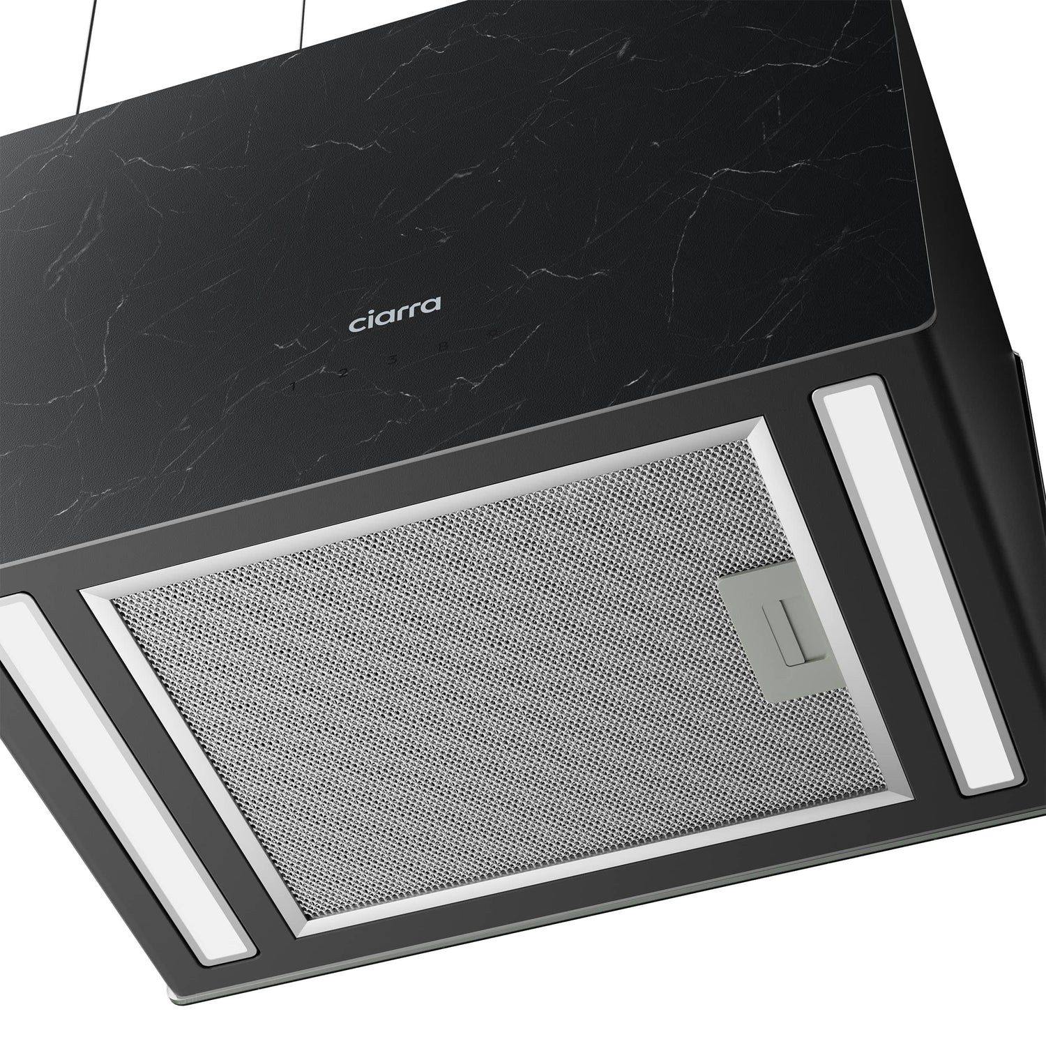 Ciarra Pinnacle Hotte Aspirante îlot en Verre 48 cm en Marbre Shadow Noir CBCG4850-OW